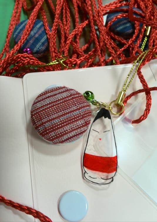 起き上がり小法師と会津木綿の布で作られたストラップ♡